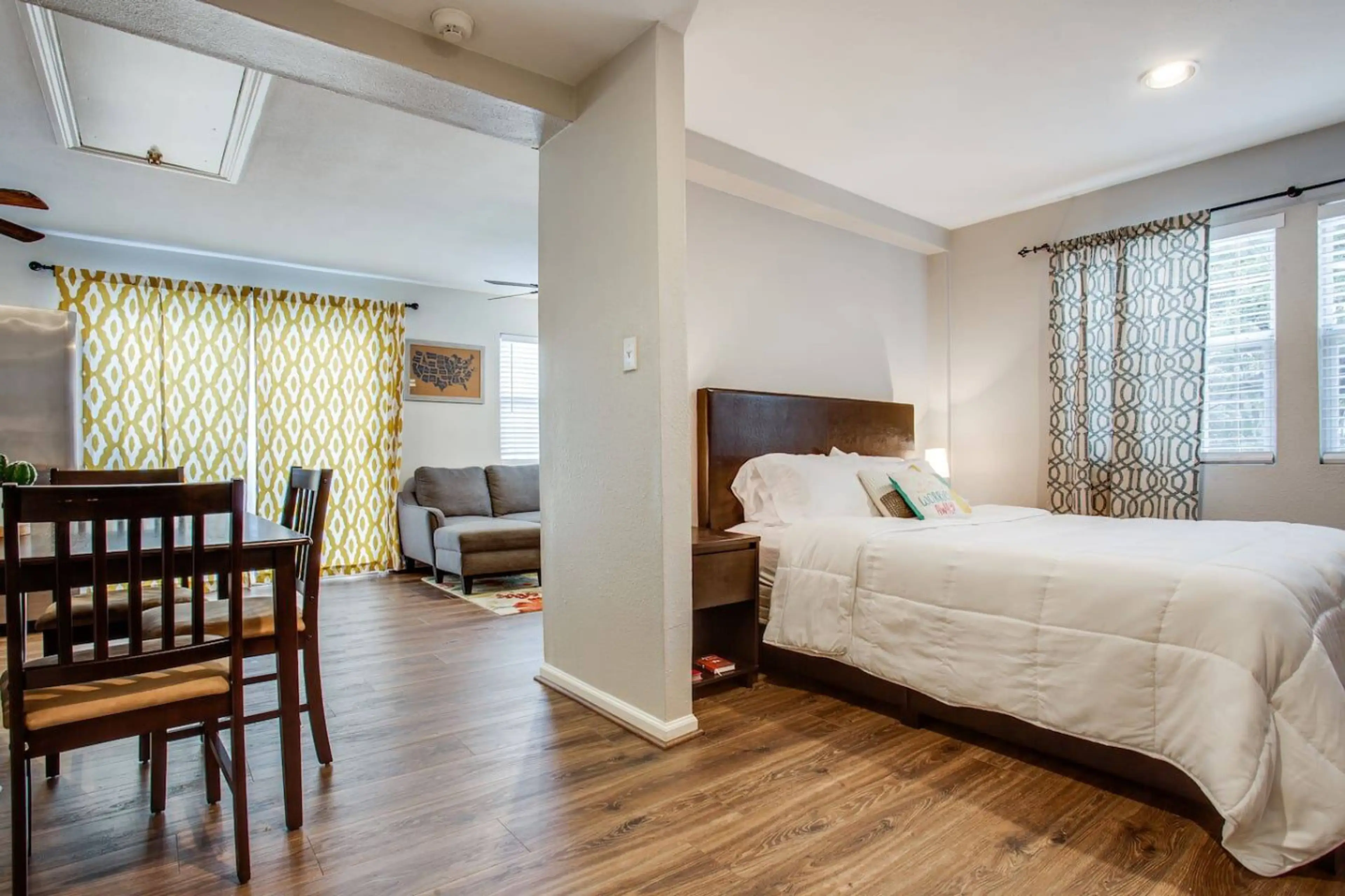Welcome to Sunny Door, your cozy private retreat just 1 mile from downtown and equally close to the Bishop Arts District, known for great dining, shopping, coffee shops, and nightlife. This charming backhouse offers a private entrance and parking for added convenience, and is professionally cleaned ...