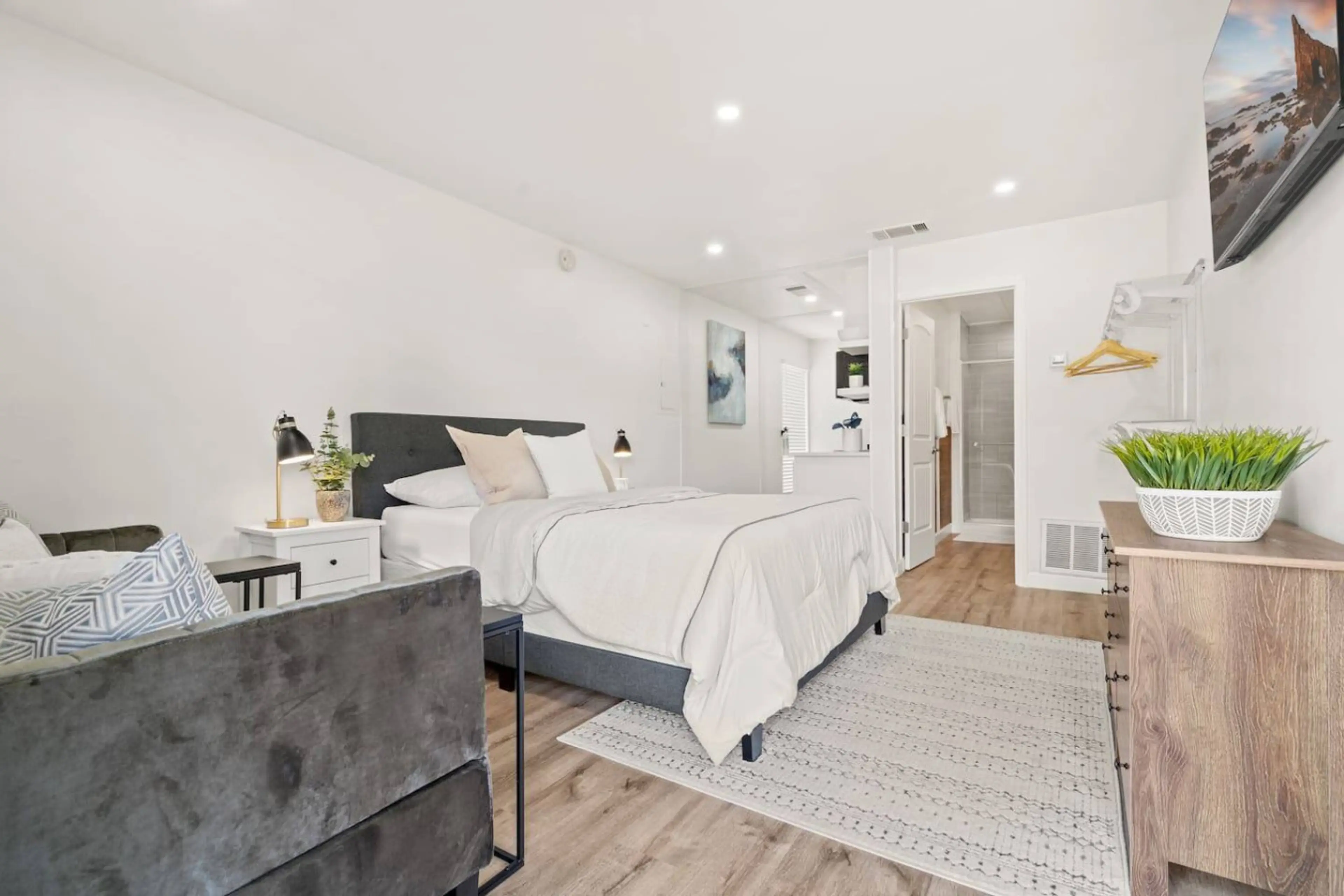 Stay in Comfort & Luxury in your cozy home away from home! Completely remodeled with all the extras & set up by a professional designer for an upscale stay! Perfect for nurses, internships, professors, corporate stays, or while you find your perfect long term home! You'll have access to the laundry...