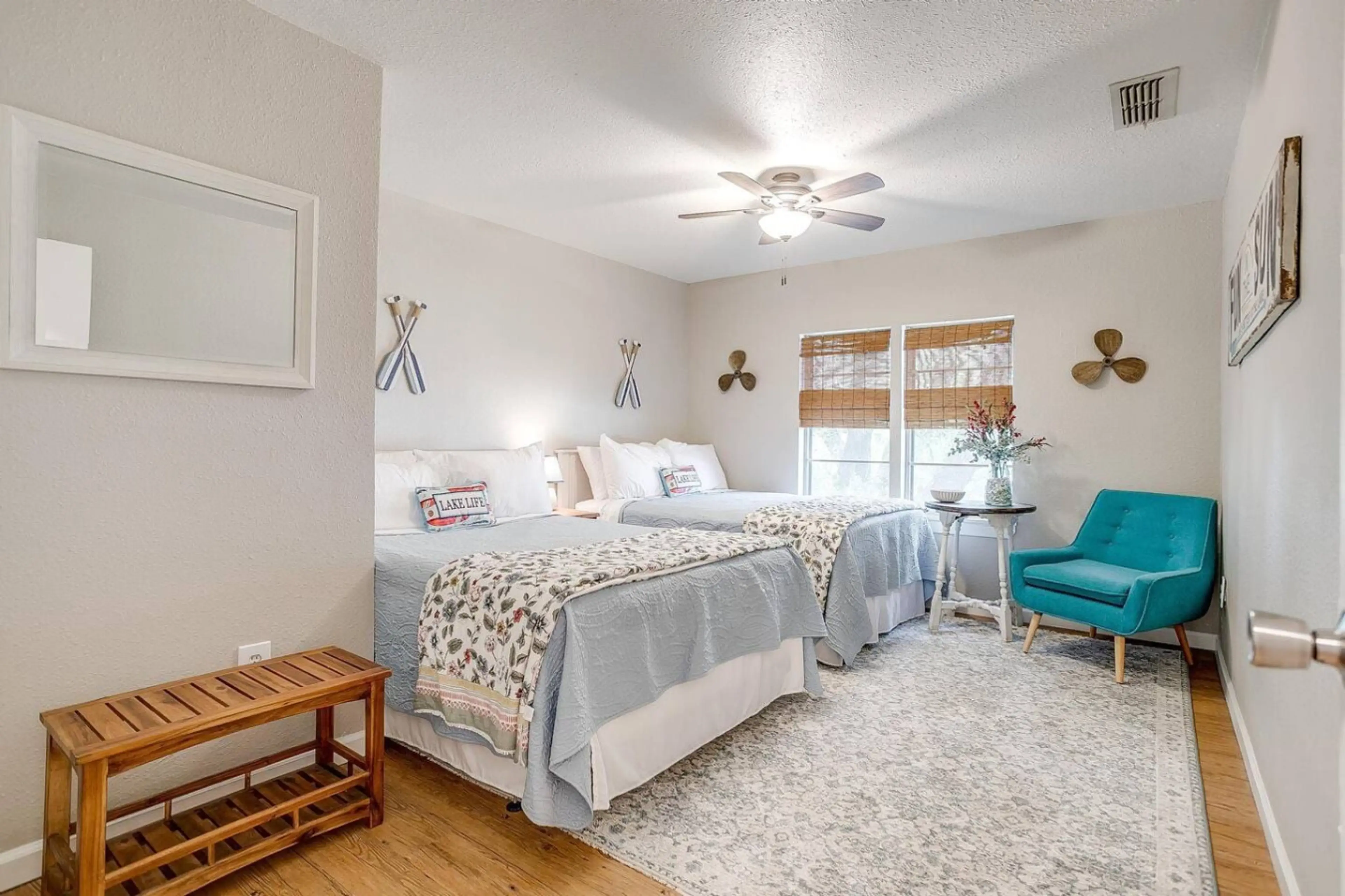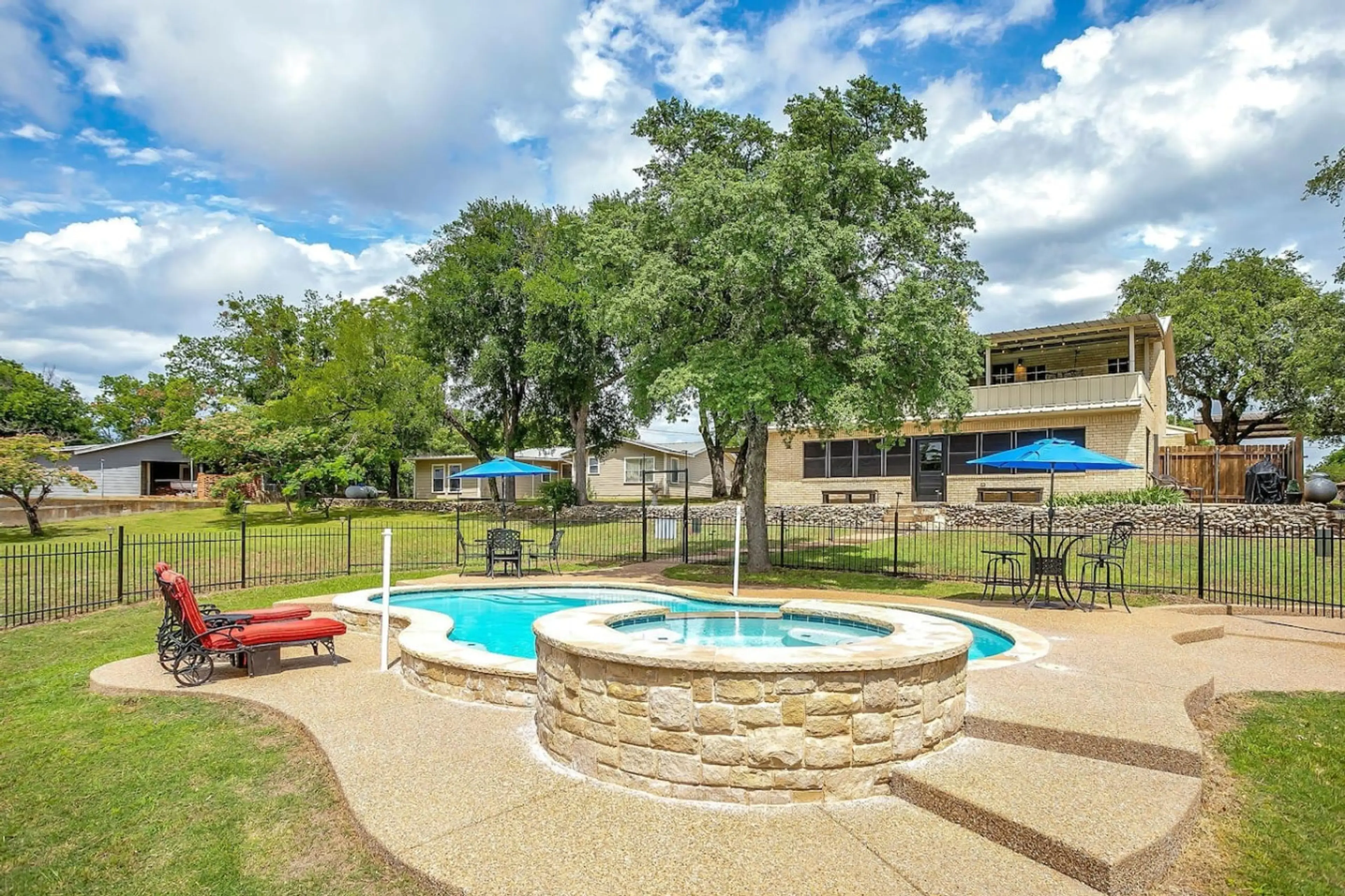 Relax with space & amenities for everyone in our peaceful laguna retreat. Enjoy a pool, hot tub & a gorgeous view of Lake Whitney along with lake access to throw in a line & catch a fish! Enjoy your coffee or cocktail on the private second story balcony with gorgeous lake views. Cool off in the po...